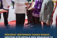 Siaran Pers 6/SP/IV/BH/2026 Kamis, 2 April 2026 *Percepat Sertipikasi Tanah Wakaf, Menteri ATR/Kepala BPN Serahkan 33 Sertipikat untuk Rumah Ibadah di Sulawesi Tengah* Palu…