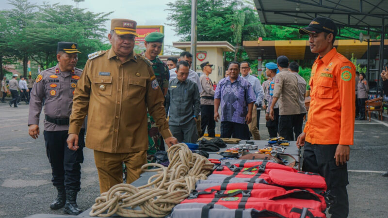Kegiatan apel ditutup dengan pengecekan barisan personel dari berbagai instansi serta pemeriksaan peralatan dan kendaraan penunjang operasi penanggulangan bencana. Bupati Fakhry secara langsung meninjau kondisi sarana yang disiagakan, mulai dari mobil tangki air, perahu karet, hingga logistik darurat.