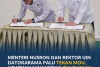 Siaran Pers 2/SP/IV/BH/2026 Rabu, 1 April 2026 *Menteri Nusron dan Rektor UIN Datokarama Palu Teken MoU, Libatkan Mahasiswa Tuntaskan Legalisasi Tanah Wakaf* Palu –…