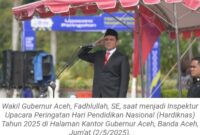 Banda Aceh – Wakil Gubernur Aceh, H. Fadhlullah, menjadi inspektur upacara pada apel peringatan Hari Pendidikan Nasional (Hardiknas) Tahun 2025 yang digelar di Halaman…