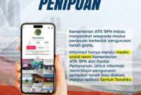 Kementerian ATR/BPN mengimbau masyarakat untuk waspada penipuan yang berkedok pengurusan sertipikat tanah gratis. Untuk itu, kami mengajak kamu semua untuk lebih berhati-hati dan mengakses…