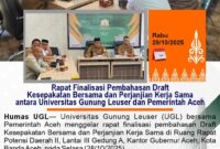 Banda Aceh, 28 Oktober 2025 — Universitas Gunung Leuser (UGL) bersama Pemerintah Aceh menggelar rapat finalisasi pembahasan Draft Kesepakatan Bersama dan Perjanjian Kerja Sama…