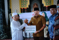 Suka Makmue : Bupati Nagan Raya Provinsi Aceh, Dr. TR. Keumangan, S.H., M.H., menyerahkan secara simbolis bantuan sajadah untuk masjid dan meunasah yang bersumber…
