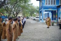 Suka Makmue : Wakil Bupati (Wabup) Nagan Raya, Provinsi Aceh, Raja Sayang, memimpin apel pagi di halaman Kantor Dinas Kependudukan dan Pencatatan Sipil (Disdukcapil)…