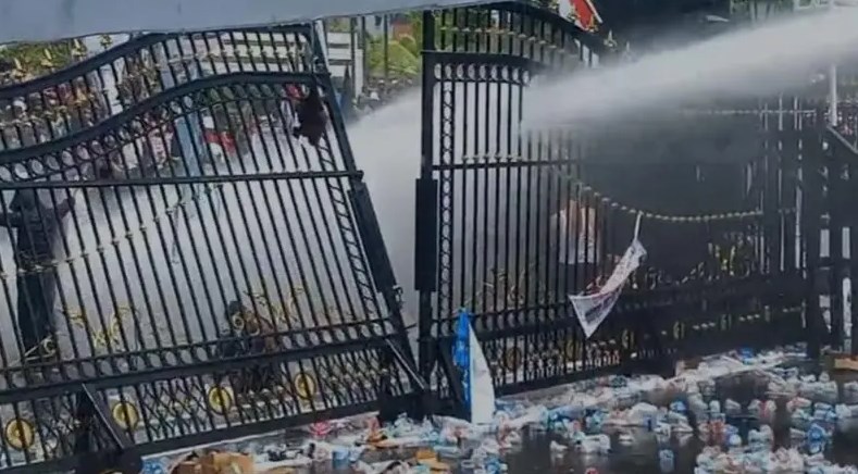 Menjelang pukul 11.00 WIB, situasi mulai memanas. Sudewo belum muncul di hadapan massa, sementara sejumlah pengunjuk rasa melempar botol air mineral dan gelas plastik ke arah aparat. Baliho di sekitar lokasi dirusak, kaca kantor bupati pecah, dan massa mencoba merobohkan gerbang pendapa.