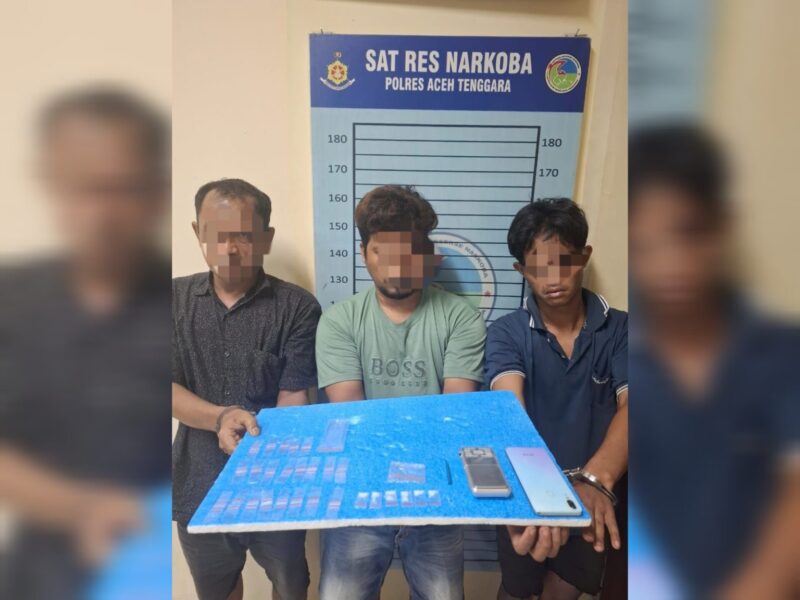 Aceh Tenggara – Tiga pria yang diduga kuat terlibat dalam penyalahgunaan narkotika jenis sabu dibekuk Tim Opsnal Satresnarkoba Polres Aceh Tenggara dalam sebuah penggerebekan di Desa Sabilussalam, Kecamatan Babul Makmur, pada Senin malam (19/5/2025) sekitar pukul 21.30 WIB. Ketiganya masing-masing berinisial MR (29), RH (18), dan RW (44). Mereka kini mendekam di sel tahanan Polres Aceh Tenggara untuk mempertanggungjawabkan perbuatannya.