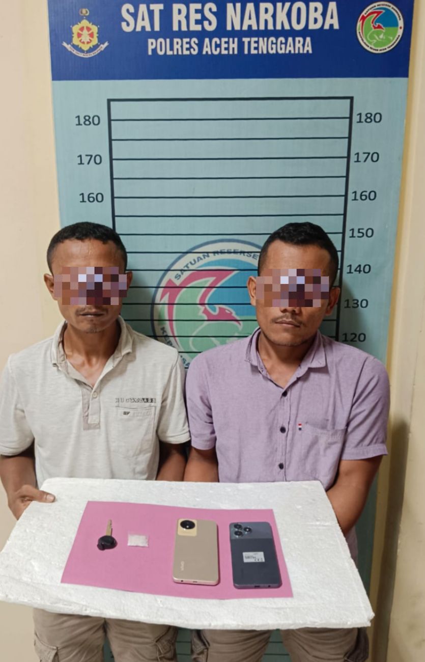 Kedua tersangka diketahui berinisial A (33), warga Desa Tenambak Alas, dan H (37), warga Desa Sepakat Segenep. Penangkapan ini dilakukan setelah petugas menerima informasi dari masyarakat mengenai aktivitas mencurigakan dua pria yang berboncengan menggunakan sepeda motor Honda Beat Street warna hitam bernomor polisi BL 5707 HP. Keduanya diduga sedang membawa narkotika dan melintas di wilayah tersebut.