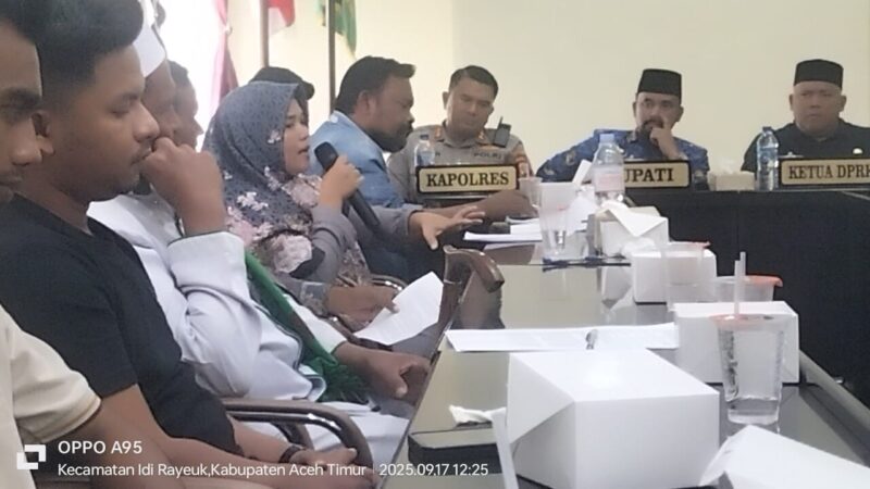 Aceh Timur, 17 September 2025 – Gerakan Rakyat Aceh Menggugat (GRAM) menggelar aksi dan menyampaikan 10 tuntutan kepada Pemerintah Aceh Timur. Aksi ini diterima langsung oleh Ketua DPRK Mutaisir, Bupati Aceh Timur, Kapolres Aceh Timur, dan Kepala Kejaksaan Negeri (Kejari) Aceh Timur di ruang bupati.