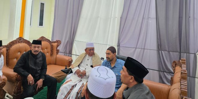 BIREUEN — Gubernur Aceh Muzakir Manaf bertakziah ke kediaman ulama kharismatik Tgk H Sofyan Mahdi, atau yang akrab disapa Abon Arongan, di Dayah Tauthiatuth Thullab, Samalanga, Kabupaten Bireuen, Kamis (9/10/2025). Kunjungan ini dilakukan sebagai bentuk belasungkawa atas wafatnya istri tercinta Abon Arongan, Ummi Ainal Mardhiah binti Ahmad.