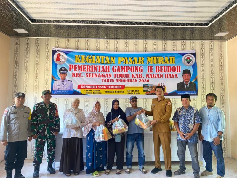 Suka Makmue : Dalam upaya membantu masyarakat menghadapi lonjakan harga bahan pokok menjelang Hari Raya Idul Fitri 1447.H,/2026.M. Pemerintah Gampong Ie Beudoh Kecamatan Seunagan Timur Kabupaten Nagan Raya Provinsi Aceh menggelar operasi pasar Murah.