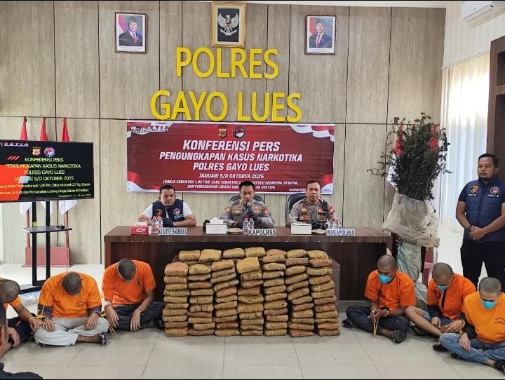 Dari Januari hingga Oktober 2025, jajaran Satresnarkoba berhasil mengungkap berbagai kasus besar dengan total barang bukti mencapai 1,95 ton ganja kering, 2,7 kilogram sabu, 28 butir ekstasi, serta menemukan ladang ganja seluas 60 hektare yang tersebar di 15 titik di empat kawasan pegunungan Kabupaten Gayo Lues.