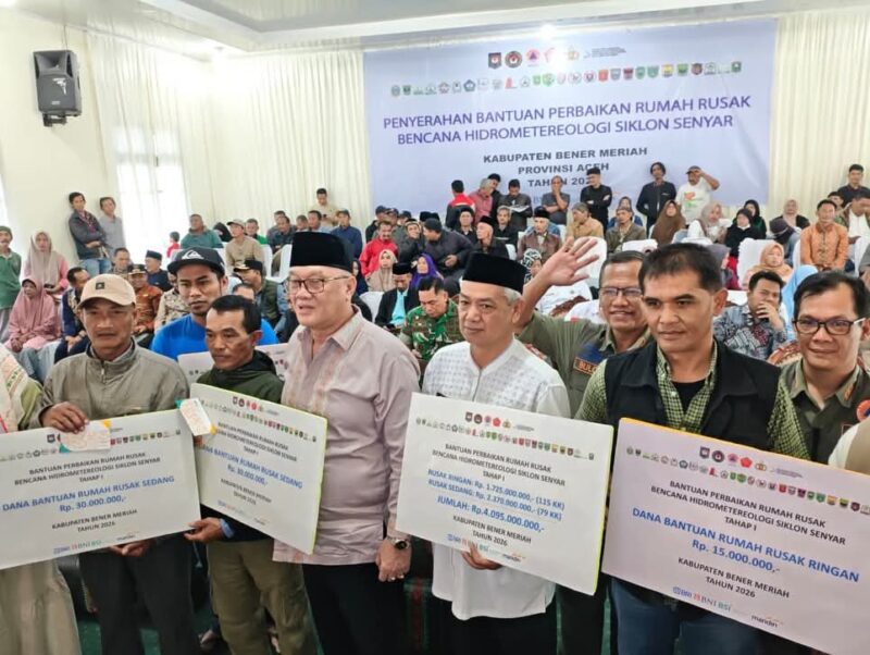 BENER MERIAH BARANEWSACEH.CO Pemerintah Kabupaten Bener Meriah menyelenggarakan acara Penyerahan Bantuan Perbaikan Rumah bagi masyarakat terdampak bencana hidrometeorologi. Acara yang berlangsung di Aula Pendopo Bupati pada Jumat (13/2/2026) ini menyasar rumah dengan kategori Rusak Ringan (RR) dan Rusak Sedang (RS).