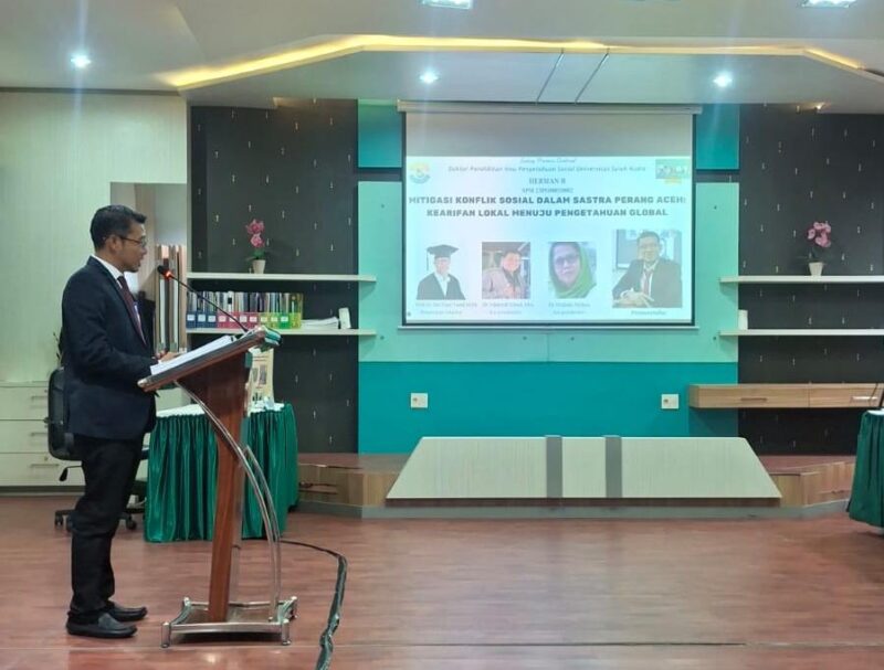 Banda Aceh—Akademisi USK yang juga budayawan Aceh, Herman RN, berhasil menyelesaikan studi doktoral pada Program Studi Doktor Pendidikan Ilmu Pengetahuan Sosial (DPIPS) Sekolah Pascasarjana Universitas Syiah Kuala. Kelulusan tersebut diumumkan dalam sidang promosi doktoral DPIPS, Selasa (21/04/2026) di Auditorium Pascasarjana USK.