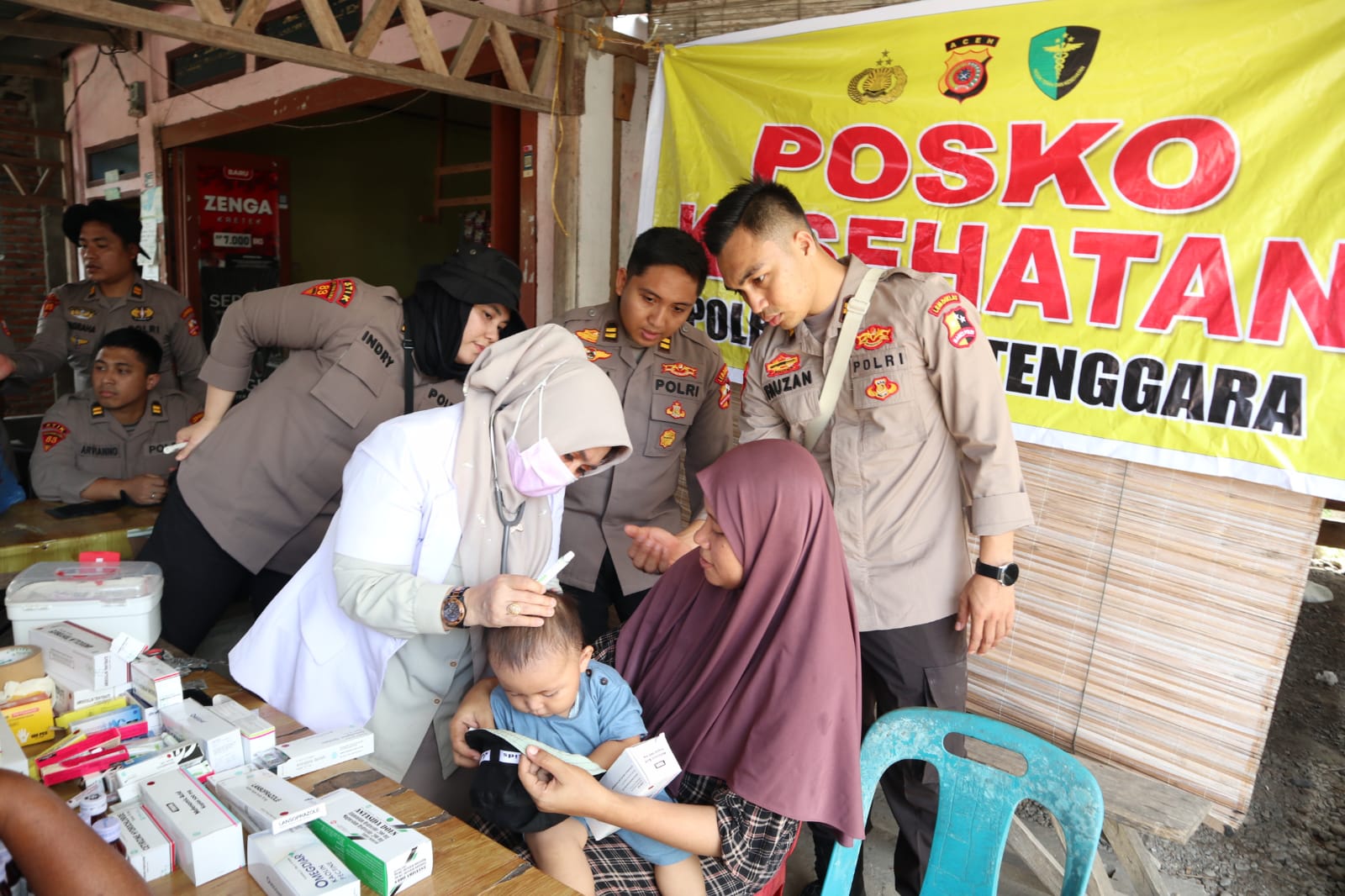 Tak hanya berfokus pada pemulihan trauma, Polres Aceh Tenggara turut menghadirkan posko kesehatan gratis. Melalui layanan ini, warga dapat memeriksakan kesehatan sekaligus menerima obat-obatan secara cuma-cuma, sehingga manfaat kegiatan benar-benar dirasakan langsung oleh masyarakat.