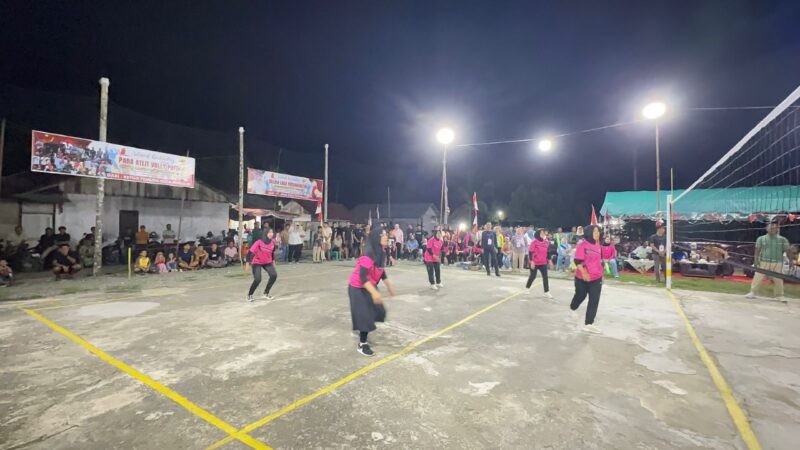 Suka Makmue : Kapolres Nagan Raya AKBP DR. Benny Bathara, S.i.k., M.i.k.,menghadiri secara langsung pertandingan bola voli persahabatan antara Bhayangkari melawan masyarakat dalam rangka memeriahkan Hari Ulang Tahun Kemerdekaan Republik Indonesia ke-80, yang digelar di Lapangan Desa Kuta Makmue, Kecamatan Kuala, Rabu, 13 Agustus 2025.