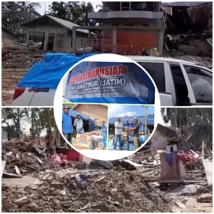 ACEH UTARA : Pengurus PWI Aceh menyalurkan bantuan kemanusiaan yang digalang Pengurus Persatuan Wartawan Indonesia (PWI) Jawa Timur (Jatim) dan Jurnalis Siaga Bencana PWI Malang Raya untuk korban bencana banjir dan longsor Aceh yang terjadi akhir November 2025.