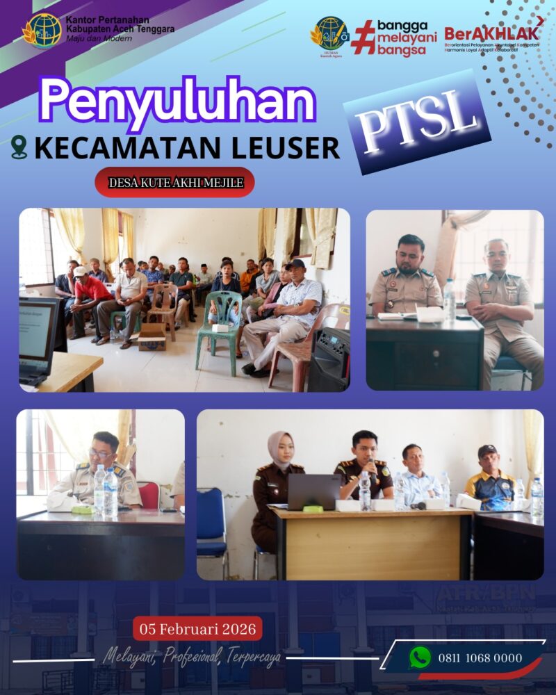 kegiatan penyuluhan Program Pendaftaran Tanah Sistematis Lengkap (PTSL) Tahun Anggaran 2026 yang bertempat di Kecamatan Leuser, pada 05 Februari 2026.