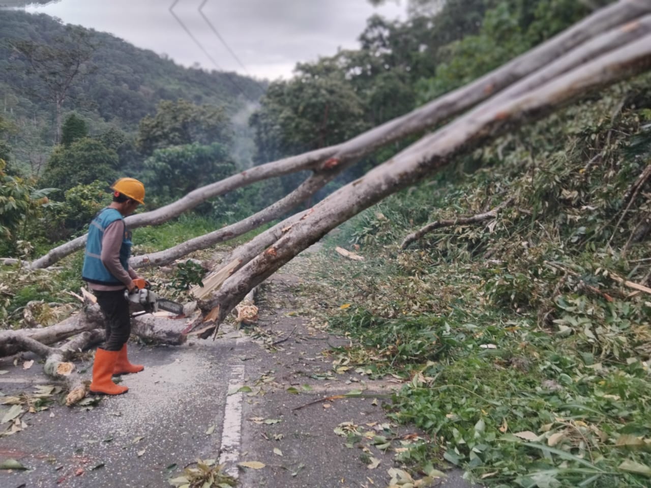 “Di Desa Pepelah telah tumbang batang kayu, lagi dibersihkan. Mohon bantuan dari pihak kabupaten dan pihak terkait,” ujar warga dalam video berdurasi sekitar satu menit tersebut.