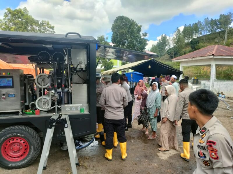 Pelayanan tersebut menggunakan mobil water treatment milik Brimob Polda Sumsel yang mampu mengolah air menjadi air bersih layak dan aman untuk langsung dikonsumsi. Kehadiran fasilitas ini menjadi solusi penting bagi para pengungsi dalam memenuhi kebutuhan dasar air minum pascabencana.