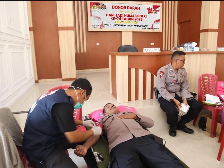 Blangkejeren, 22 Oktober 2025 | Dalam rangka memperingati Hari Jadi Humas Polri ke-74 Tahun 2025, Polres Gayo Lues menggelar kegiatan Donor Darah bertema “Polisi Humanis Harapan Masyarakat” yang berlangsung di Aula Adhi Pradana Polres Gayo Lues.