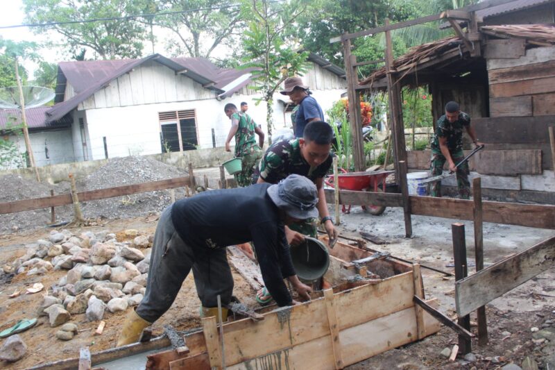 Kebersamaan antara personel TNI dan warga terlihat dalam setiap tahapan pembangunan, mulai dari pengerjaan pondasi hingga struktur dasar bangunan.