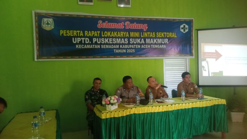 Aceh Tenggara – UPTD Puskesmas Suka Makmur, Kecamatan Semadam, menggelar Rapat Lokakarya Mini Lintas Sektoral Tahun 2025 yang membahas evaluasi pelaksanaan program kesehatan desa serta koordinasi lintas instansi dalam meningkatkan derajat kesehatan masyarakat.