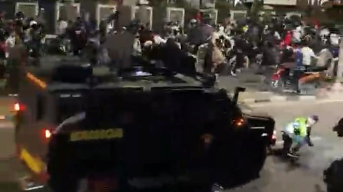Video amatir yang beredar merekam detik-detik kejadian. Rantis Brimob tampak menyalakan sirine sambil bergerak cepat ke arah pendemo yang berhamburan. Salah seorang pengemudi ojol yang tidak sempat menghindar menjadi korban. Rantis berhenti beberapa detik, namun korban tetap terlindas sebelum kendaraan itu meninggalkan lokasi.