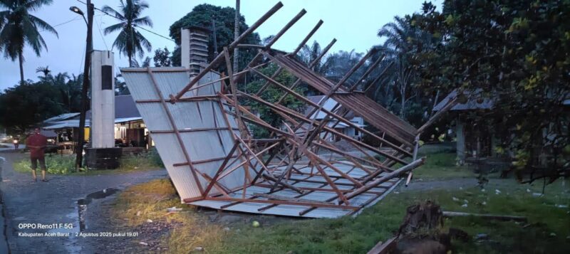Di sisi lain, hujan deras disertai angin puting beliung juga dilaporkan melanda wilayah barat Indonesia dan menyebabkan kerusakan pada pemukiman warga. Peristiwa ini terjadi di Kabupaten Aceh Barat pada Sabtu (2/8) sekitar pukul 19.00 WIB, tepatnya di Gampong Lueng Tanoh Tho, Kecamatan Woyla, dan langsung menimbulkan dampak signifikan bagi masyarakat setempat.