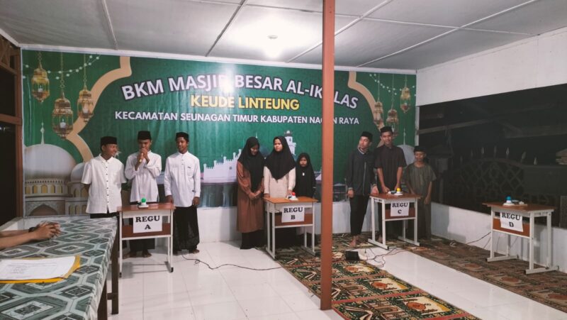 Suka Makmue : Dalam rangka memperingati Malam Nuzulul Qur’an Ramadha 1447.H Tahun 2026. M BKM Masjid Besar Al ikhlas Keude Linteung Kecamatan Seunagan Timur Kabupaten Nagan Raya Provinsi Aceh, mengadakan lomba Cerdas cermat Agama yg diikuti oleh Siswa siswi TK SD dan SMP dalam Wilayah Kecamatan Seunagan Timur.