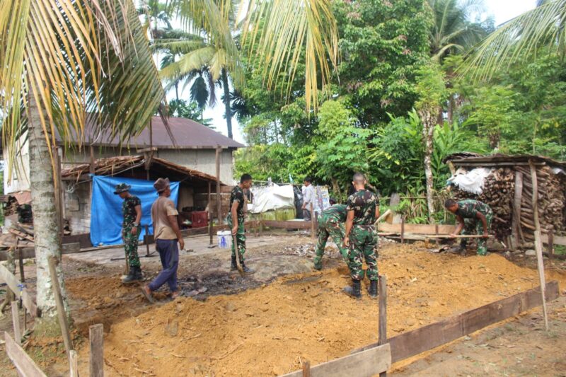 Abdya– Personel TNI yang tergabung dalam Satuan Tugas (Satgas) TNI Manunggal Membangun Desa (TMMD) ke-128 Kodim 0110/Abdya secara bertahap terus menggenjot perehaban rumah tidak layak huni (RTLH) sebanyak lima unit milik keluarga kurang mampu di Desa Gunung Cut, Kecamatan Tangan-Tangan, Minggu (26/4/2026).