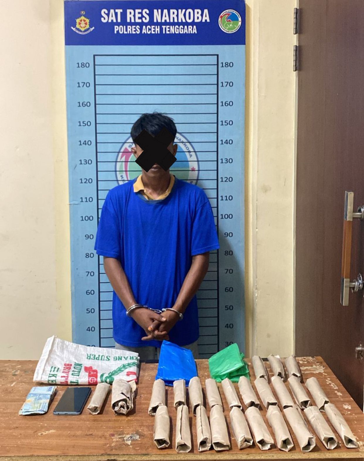ACEH TENGGARA – Kepolisian Resor (Polres) Aceh Tenggara kembali menunjukkan komitmennya dalam memerangi peredaran narkotika di wilayah hukumnya. Pada Rabu (14/5/2025) sore, Satuan Reserse Narkoba (Satresnarkoba) Polres Aceh Tenggara berhasil menangkap seorang pria yang kedapatan menyimpan puluhan bungkus ganja siap edar di Desa Lawe Mejile, Kecamatan Semadam, Kabupaten Aceh Tenggara.