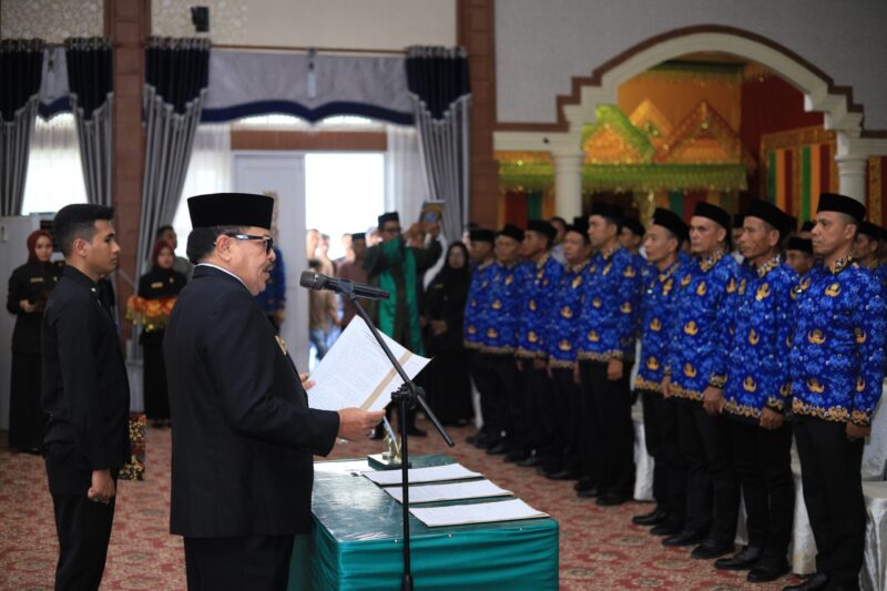 Prosesi pelantikan dan penyerahan SK secara simbolis dipimpin langsung oleh Bupati Nagan Raya, Dr. TR Keumangan, S.H., M.H., yang berlangsung di Anjungan Pendopo Bupati, Kompleks Perkantoran Suka Makmue, Rabu (1/10/2025).