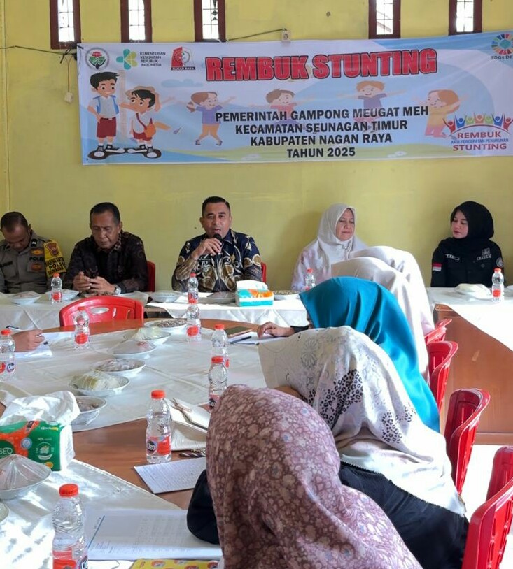 Suka Makmue : Satuan tugas penurunan stunting Kecamatan Seunagan Timur Kabupaten Nagan Raya Provinsi Aceh melaksanakan kegiatan rembuk stunting, di Gampong dalam Kecamatan Seunagan Timur. Kegiatan tersebut di buka langsung secara resmi oleh Camat Seunagan Timur Said Mudhar.M.Pd.MM.