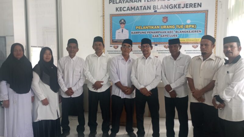 GAYO LUES | Pelantikan Tujuh Anggota Urang Tue Kampung Penampaan, Kecamatan Blangkejeren, Kabupaten Gayo Lues, resmi dilaksanakan pada Kamis, 13 Februari 2026, pukul 15.00 WIB di Kantor Camat Blangkejeren. Prosesi pelantikan dilakukan oleh Camat Blangkejeren atas nama Bupati Gayo Lues dan dihadiri oleh unsur Musyawarah Pimpinan Kecamatan (Muspika), aparatur pemerintah kampung, serta tokoh-tokoh masyarakat setempat.
