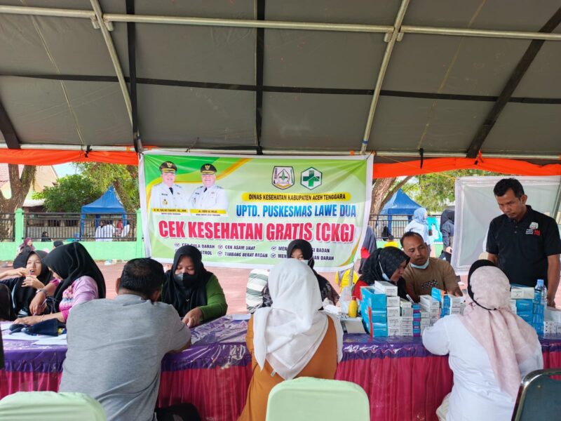 Aceh Tenggara — UPTD Puskesmas Lawe Dua melaksanakan kegiatan pemeriksaan kesehatan (CKG) gratis di Lapangan Pemuda Aceh Tenggara sebagai upaya meningkatkan kesadaran masyarakat dalam memantau kondisi kesehatan secara berkala.Minggu (09/11/2025)