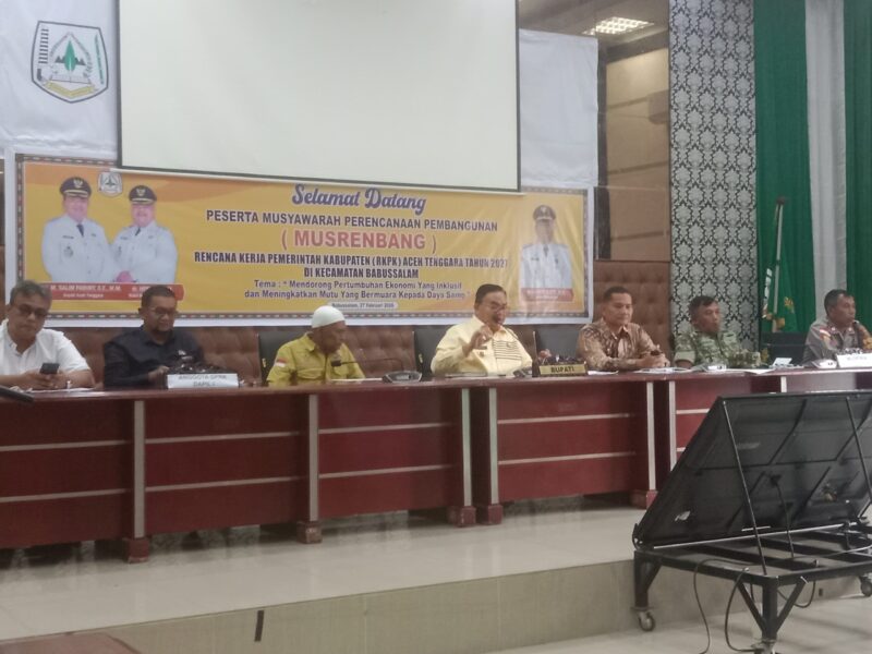 ​KUTACANE – Bertempat di Ruang Rapat Oproom Setdakab Aceh Tenggara, Jum’at (27/2/2026), berlangsung Musyawarah Perencanaan Pembangunan (Musrenbang) Rencana Kerja Pemerintah Kabupaten (RKPK) Tahun 2027 untuk wilayah Kecamatan Babussalam. Acara ini menjadi momentum krusial bagi masa depan infrastruktur dan kesejahteraan masyarakat di jantung Kabupaten Aceh Tenggara.